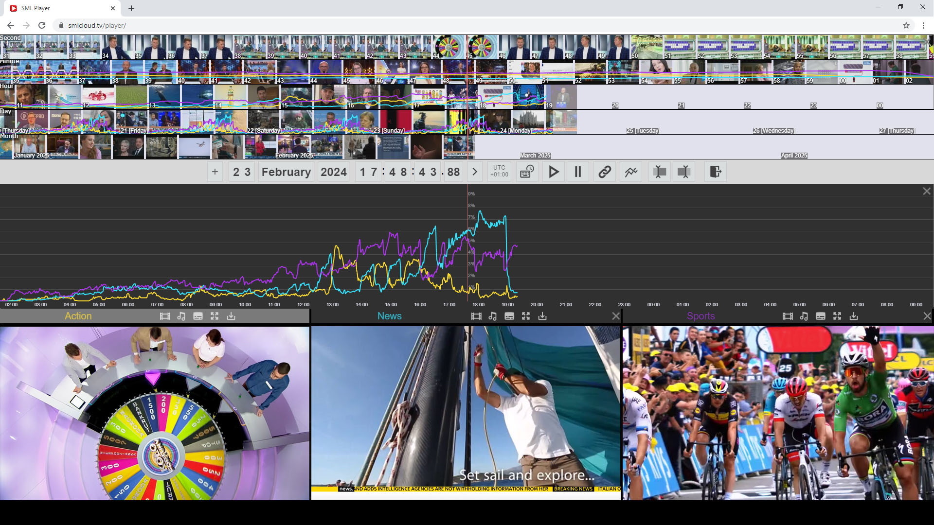 The unique Timeline based SML Player gives authorized users instant access to any part of the recordings. It is the most user-friendly Player on the market, suitable for non-tech users as well as engineers and producers. The webPlayer runs in modern web browsers on workstations and mobile devices (iOS & Android). Power users can opt for the Windows desktop Player.